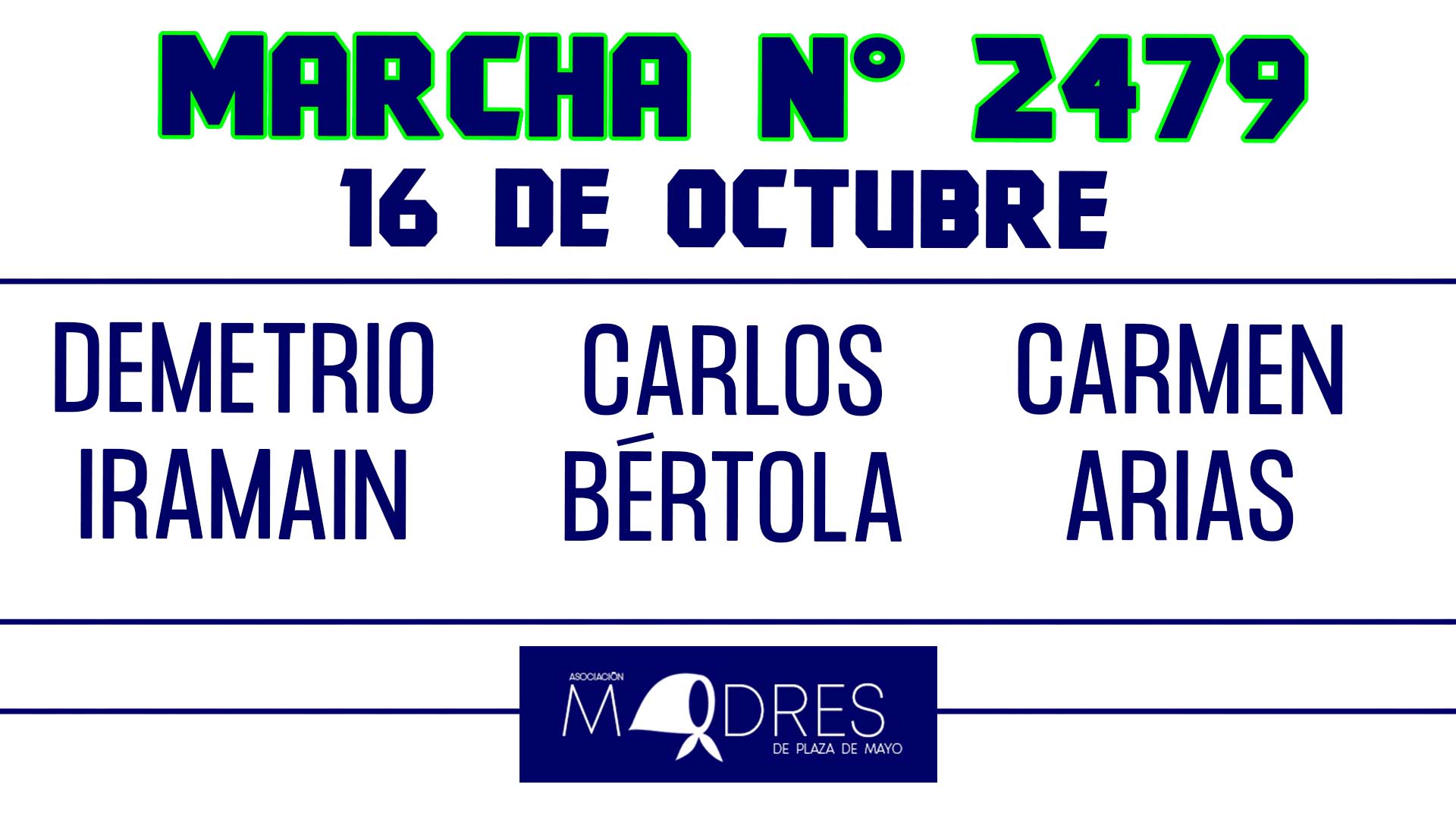 En otro jueves soleado de octubre se llevó adelante la Marcha de los Jueves N° 2478. Marcharon junto a las Madres de Plaza de Mayo Carmen Arias y Josefa “Pina”…