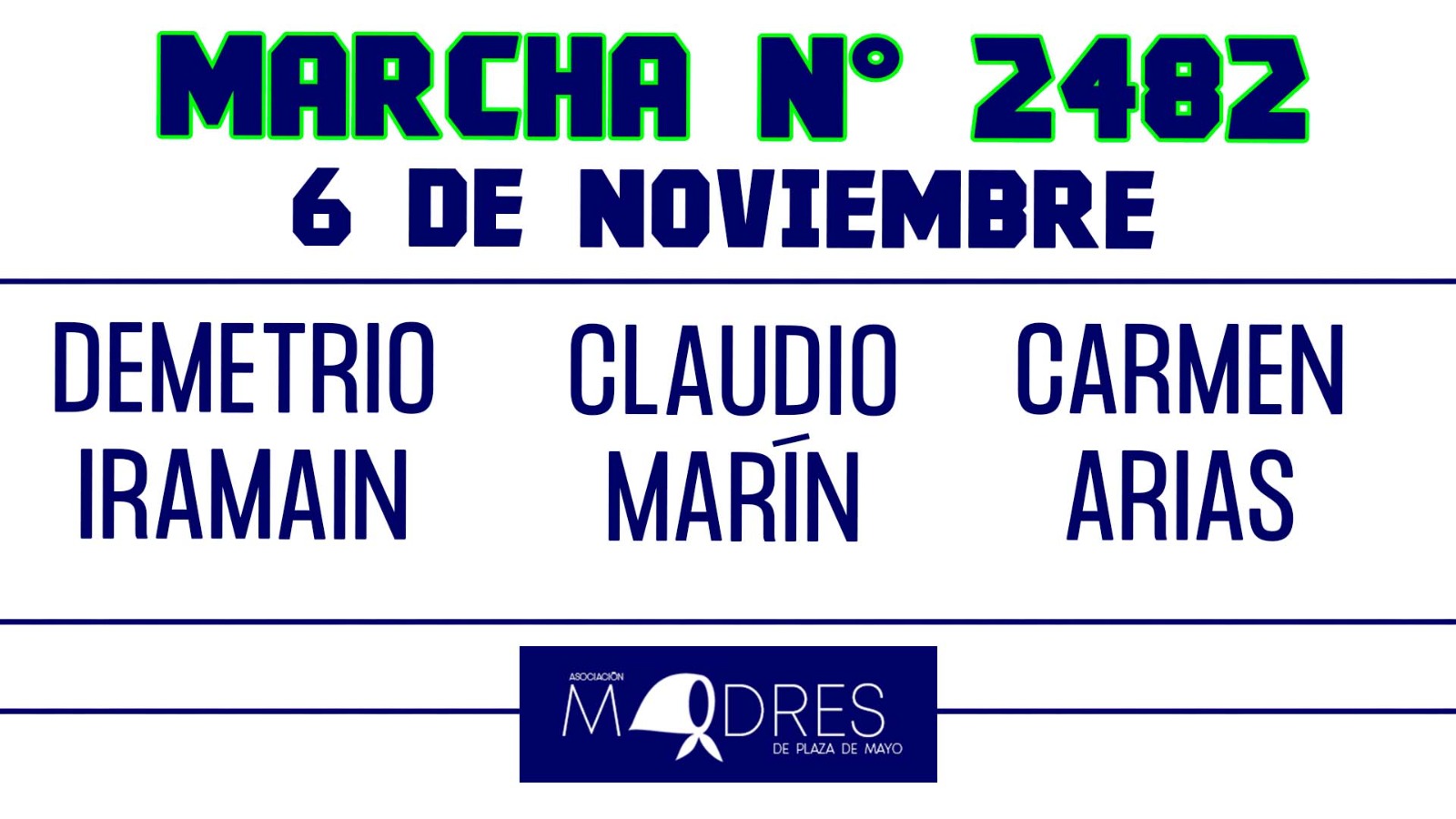 Este jueves 6 de noviembre, en la Marcha de los Jueves N° 2482, las Madres de Plaza de Mayo siguieron luchando junto a la militancia, acompañadas por Demetrio Iramain y…