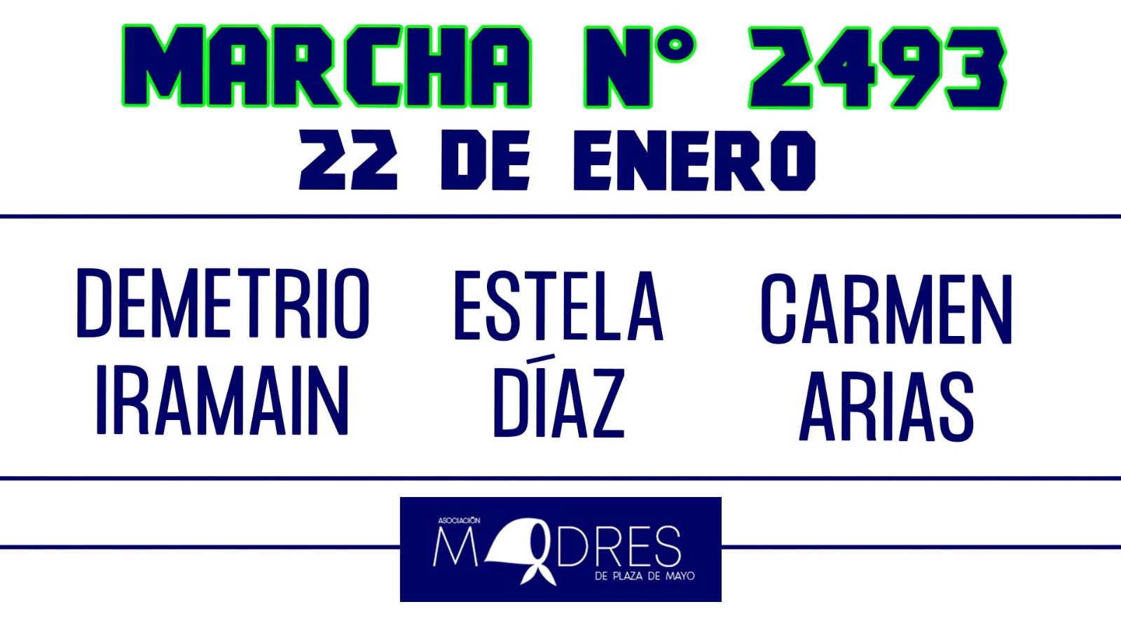 Este jueves 22 de enero, las Madres de Plaza de Mayo siguieron luchando en la Marcha de los Jueves N° 2493 junto a la militancia, Demetrio Iramain y Estela Díaz,…