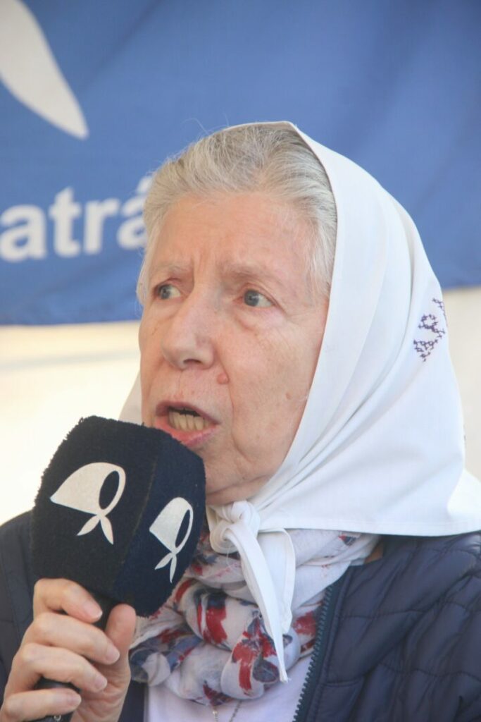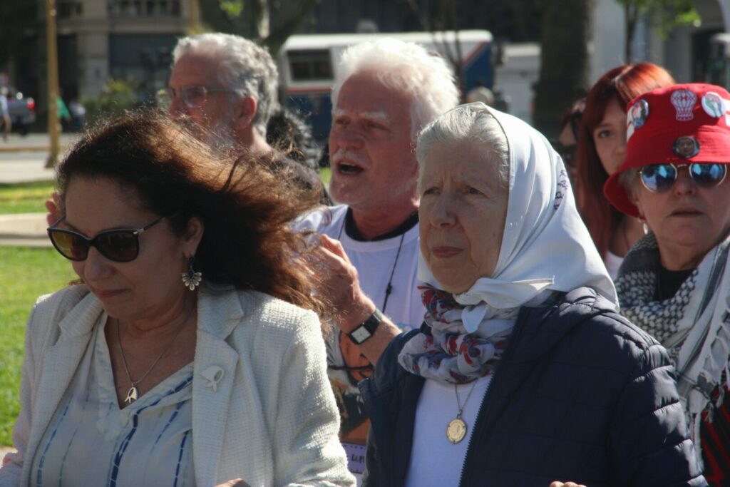 Luego fue el turno de Irene Molinari, Madre de Plaza de Mayo de la filial Mar del Plata, quien regresaba de Río donde participó junto a Sara Mrad, Madre de Plaza de Mayo – Filial Tucumán, de un concierto en homenaje a Tenório Jr. en Río de Janeiro. El recital, que tuvo lugar en el Teatro del BNDES, estuvo dedicado al genial pianista asesinado por la dictadura argentina y reunió a figuras como Gilberto Gil, Caetano Veloso, Marcos Valle y Joyce Moreno, entre otros grandes músicos. “Estoy recién llegada de Brasil, donde fuimos invitadas a un homenaje con músicos brasileros. Estamos muy contentas: hemos puesto nuestras consignas, hemos dicho el valor de la vida y hemos denunciado el atropello de Estados Unidos sobre nuestra región”, relató.