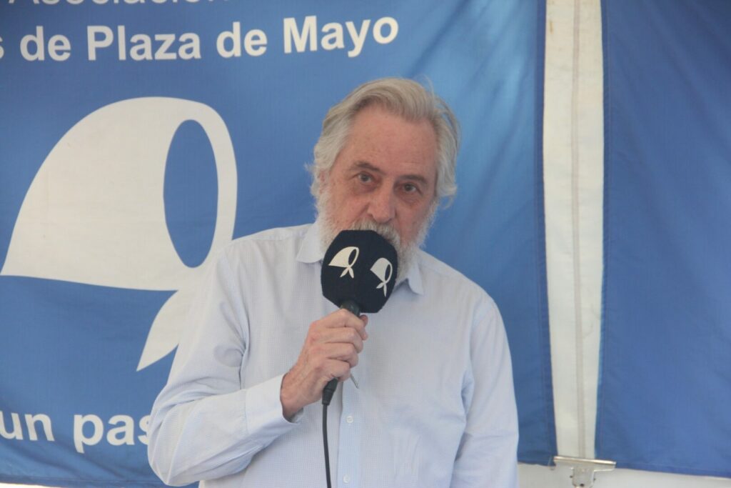 Paso siguiente, Demetrio presentó con emoción a un invitado muy especial: “Hoy es una plaza muy especial, una plaza muy especial. Quiero presentarles a un compañero muy querido por las Madres de Plaza de Mayo, compañero de Viedma, del sur de la Argentina, de Radio Encuentro y del canal de televisión Encuentro también. Es uno de los compañeros que promovieron la Ley de Medios, que trabajó los 21 puntos para la Coalición por una Comunicación Democrática, que estuvo con Hebe en esta misma Plaza peleando para que esa ley llegue al Congreso y finalmente se sancione. Un amigo de la casa de muchísimos años, un gran militante de la comunicación popular, un gran compañero: Néstor Busso, de Viedma”.