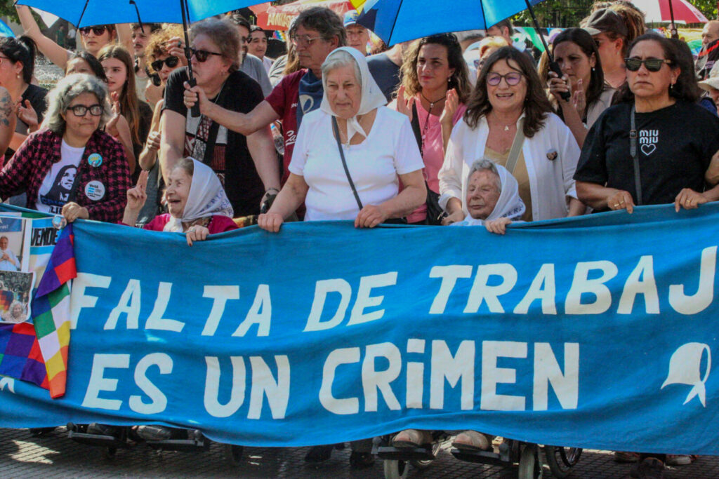 En la Marcha de los Jueves N° 2480, las Madres de Plaza de Mayo Carmen Arias, Pina de Fiore y Visitación de Loyola, que acaba de cumplir 101 años de edad, siguieron luchando junto a Demetrio Iramain y la militancia que semana a semana acompaña la ronda. La Plaza volvió a ser ese espacio de ternura y coraje donde el tiempo gira al revés y la historia sigue andando.