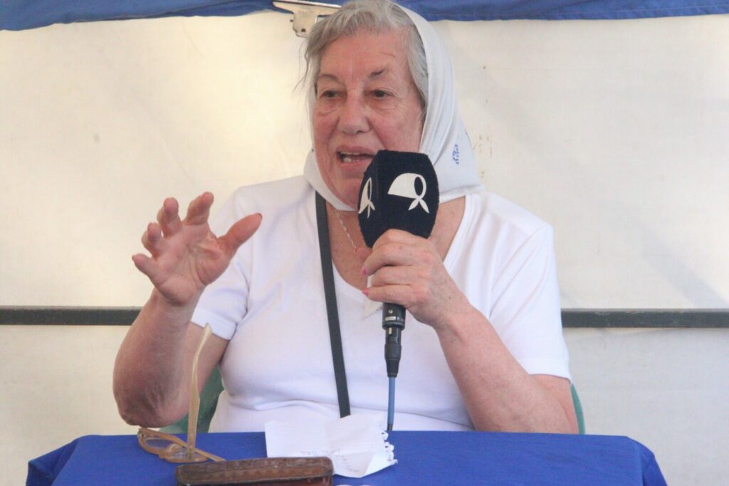 Con la misma energía que caracteriza a las Madres, Carmen señaló que la jornada era de festejo y de compromiso: “Hoy festejamos nuevamente nuestro cumpleaños con Visi. Estamos reemocionados todos”, afirmó, antes de llamar a la acción frente al contexto político.