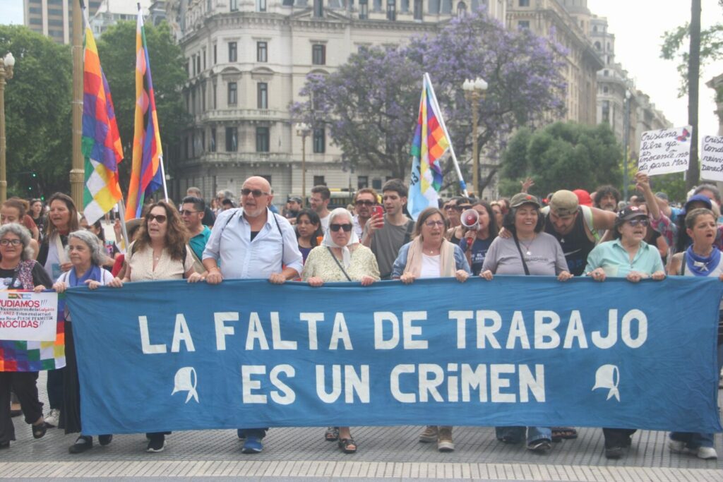 En el último jueves de noviembre, bajo un calor agobiante, la Marcha de los Jueves N° 2485 volvió a latir en la Plaza de Mayo. Más adelante, las Madres caminaron, como siempre, junto a la militancia que no afloja, acompañadas por Demetrio Iramain, por Nahuel Arrieta —que llegó para denunciar que el Gobierno de la Ciudad quiere cerrar el Profesorado Pueblos de América de la Villa 21— y por Renato Di Nicola, integrante del Grupo de Apoyo a las Madres Kabawil-El otro soy yo, llegado especialmente desde Italia. En el cierre, escuchamos a la Madre de Plaza de Mayo Carmen Arias, que estuvo acompañada por Josefa “Pina” de Fiore, reafirmando que, por más que a Milei y su junta les moleste, las Madres siguen marcando el rumbo.