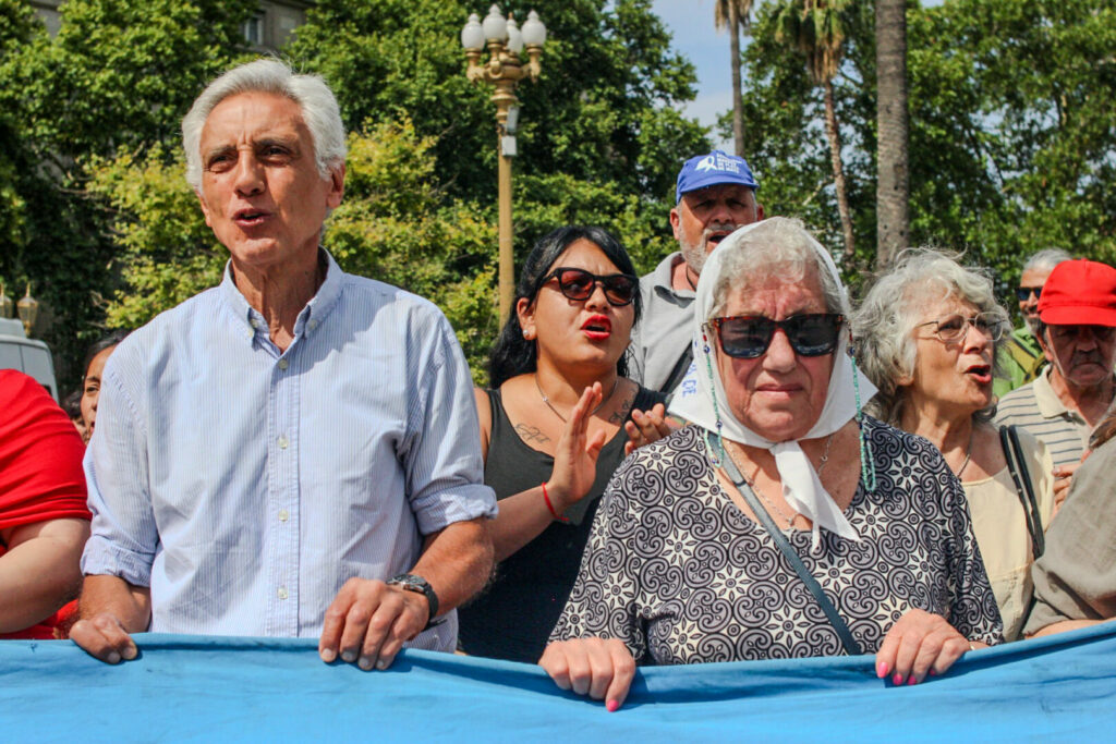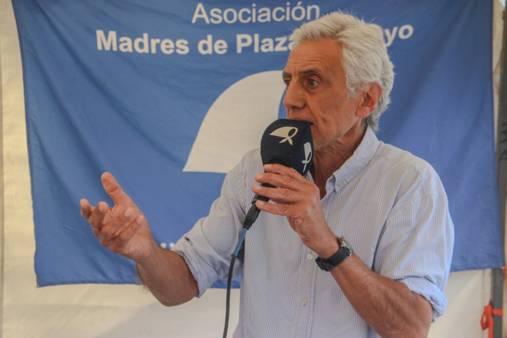A continuación, Carlos Raimundi tomó la palabra y su intervención marcó uno de los momentos más fuertes de la marcha. En un comienzo recordó a nuestra eterna compañera Hebe, agradeció a las Madres por la invitación y afirmó que participar de estas Marchas “se convirtió en un rasgo de identidad de ser argentinos”. De entrada, propuso un horizonte político: “al iniciarse un nuevo año, tenemos que convocarnos a que este sea el año de la reconstrucción y de la reorganización del movimiento nacional y popular”.