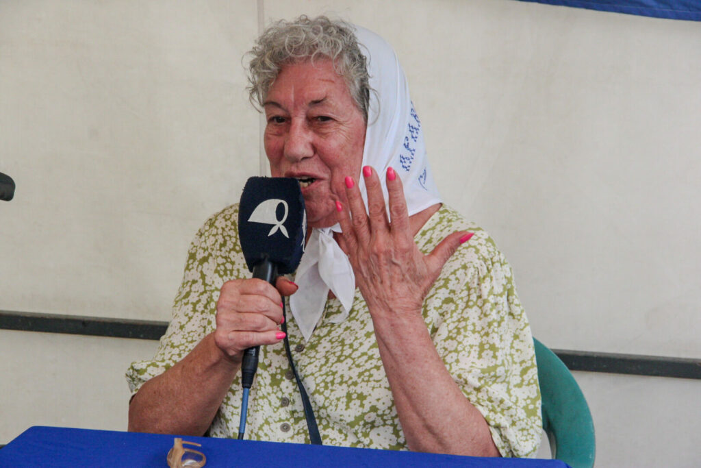 Finalmente, habló de la situación económica de la Asociación Madres de Plaza de Mayo. “La estamos pasando mal. Los gastos son elevados y no alcanza”, explicó con claridad. Y pidió redoblar el aporte solidario para sostener la Casa de las Madres, que sigue abierta todos los días, incluso frente al hostigamiento del gobierno. “Las Madres no paramos nunca. El 25 de diciembre, el 1° de enero, siempre estamos en la Plaza. Pero eso también necesita recursos y militancia”, concluyó.