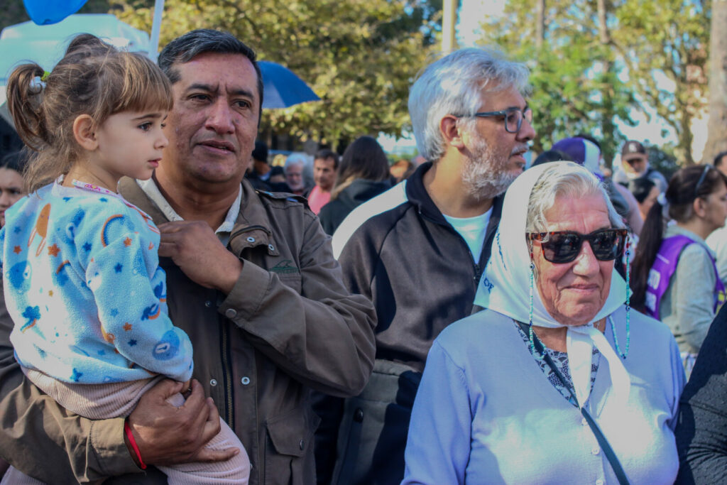 Más adelante, el foco se trasladó a la dimensión histórica y simbólica del momento que atraviesan las Madres. “Estamos en abril, mes en el que las madres cumplen 49 años de lucha”, remarcó, para inmediatamente anclar la consigna: “49 años de amor y compromiso, luchar siempre”. En ese sentido, reivindicó el recorrido de la organización como columna vertebral de la resistencia popular: “medio siglo poniendo el cuerpo por la revolución en este país… soportando todas las que pasaron en el medio, siendo protagonistas de esta historia extraordinaria”. Y fue más allá: “la dictadura vino a clausurar la lucha de nuestro pueblo y las madres lograron vencerla y hacer el puente con aquella lucha de los desaparecidos”.