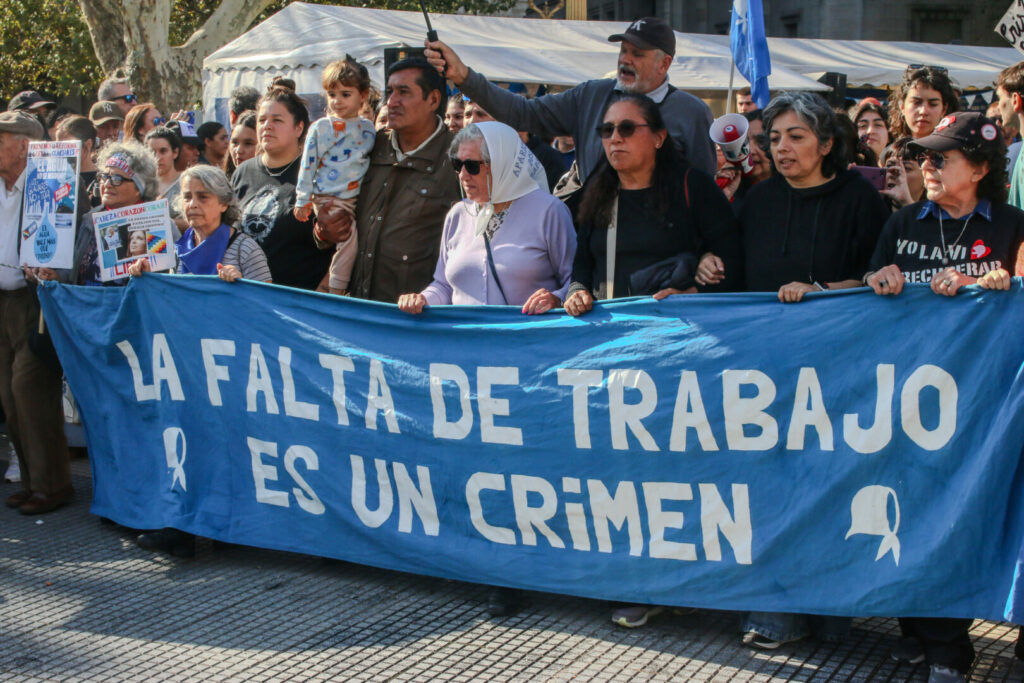 En el mismo tono, describió con crudeza la situación en los barrios: “nuestros pibes y pibas son expulsados del mundo del trabajo y del sistema educativo… y quedan a la merced del narcotráfico”. Frente a ese escenario, planteó un límite claro: “esto tiene un límite social y tiene un límite político”. Y allí elevó el tono de la intervención: “resistir es combatir… hay que combatir al enemigo que está en la Casa de Gobierno, en el Ministerio de Economía”.