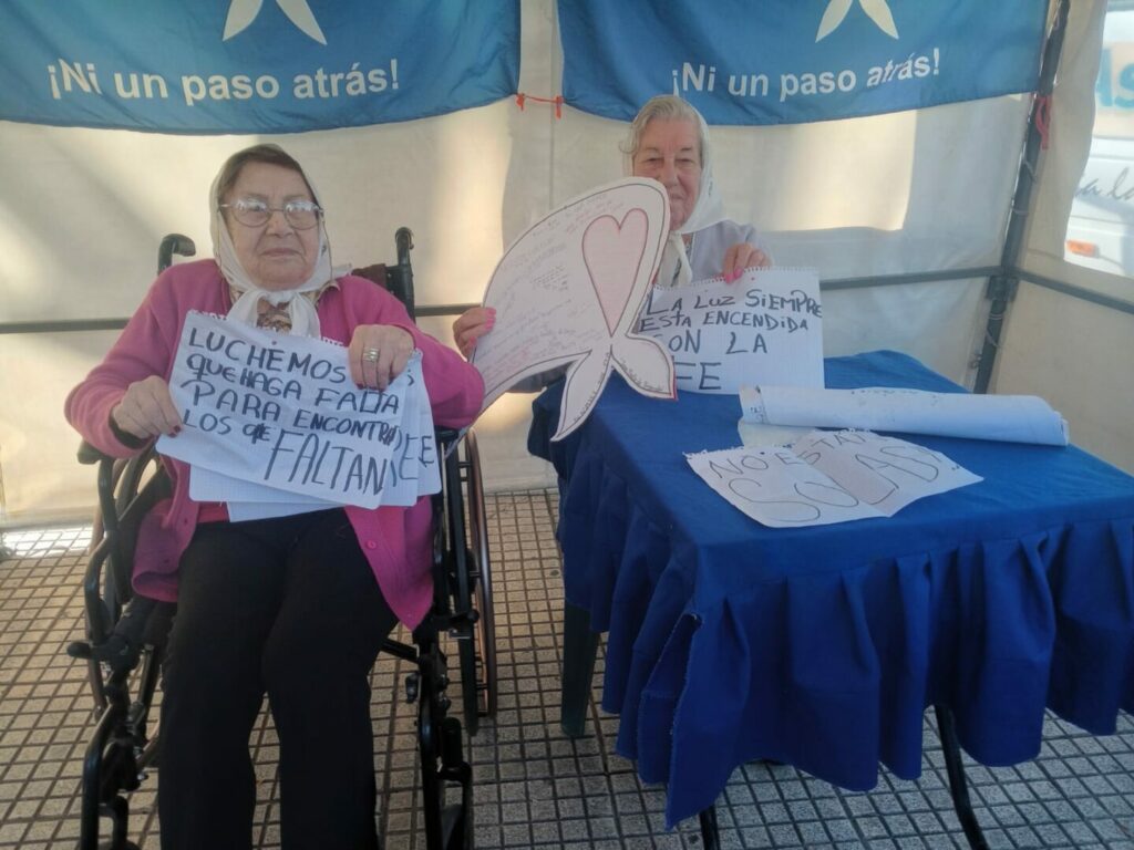 En el mismo tono, reafirmó la identidad de las Madres: “somos las madres de Plaza de Mayo… abiertas nuestras entrañas como la tierra de campo abierto… seguimos enteramente jóvenes para seguir pariendo”, retomando la potencia política y simbólica que Hebe dejó como legado. Por último, Carmen fue directa: “Fuera Milei. Cristina libre. Axel presidente de la nación”.